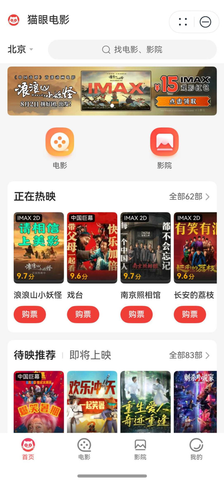 正好这周准备去看近期大火的国产动画佳作——《浪浪山小妖怪》,就打开了“猫眼电影”元服务。这个服务不仅不用下载安装,还可以实现直达秒开,非常流畅!直接就在这个界面里选好了电影和座位,付款时用了刚刚领的券,一张30块的电影票,支付20元。订单的状态和取票,直接桌面右滑进入负一屏,特别方便。